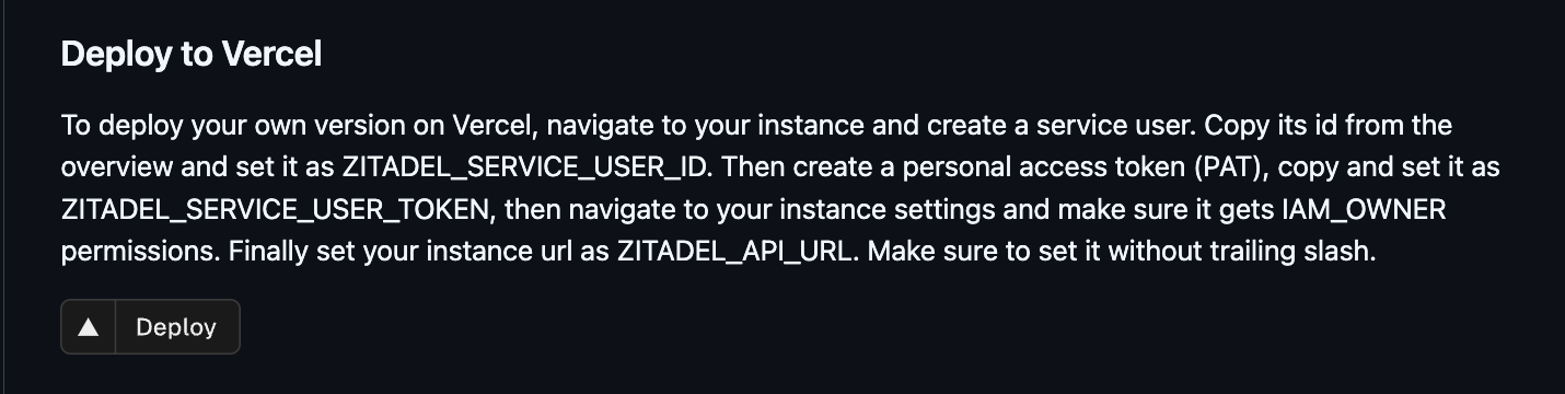 - ZITADEL_API_URL (Example: https://my-domain.zitadel.cloud, no trailing slash)