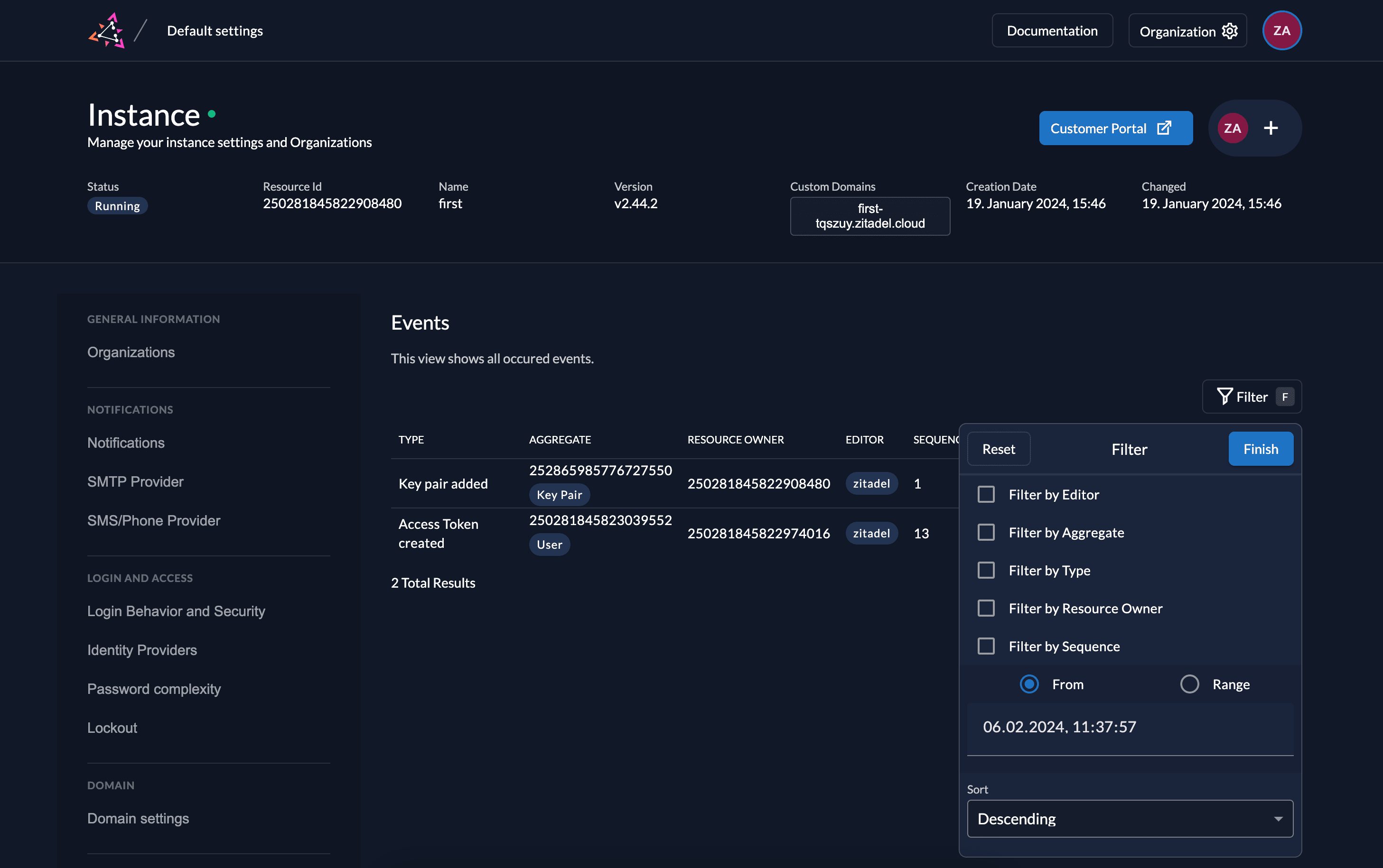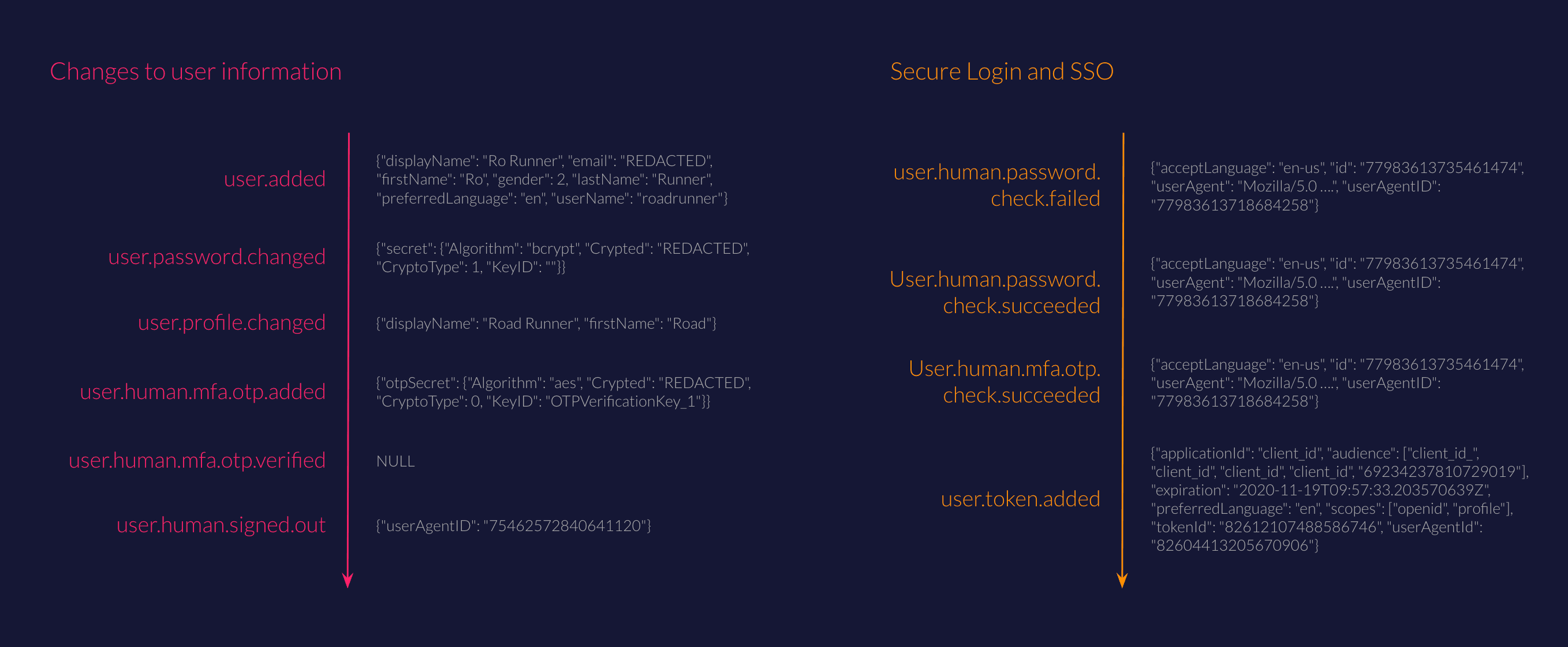 ZITADEL provides you with an built-in audit trail to track all changes and events over an unlimited period of time. Most other solutions replace a historic record and track changes in a separate log when information is updated. ZITADEL only ever appends data in an Eventstore, keeping all historic record. The audit trail itself is identical to the state, since ZITADEL calculates the state from all the past changes.