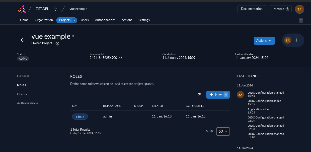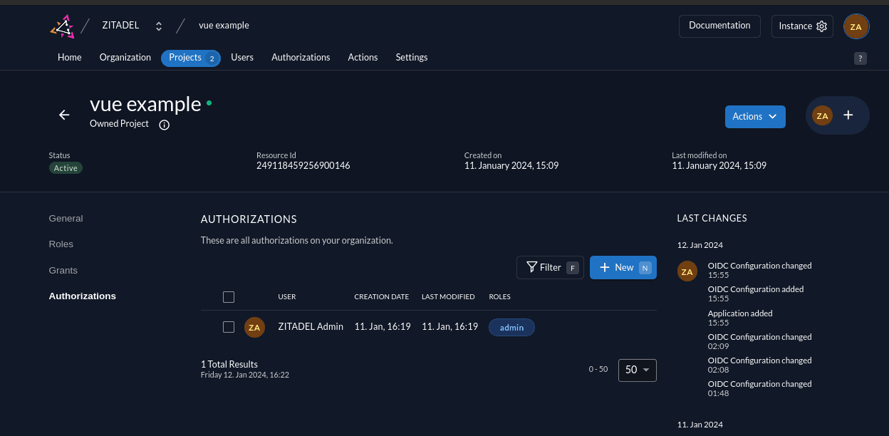 Now that you have configured your web application on the ZITADEL side, you can proceed with the integration of your Vue application.