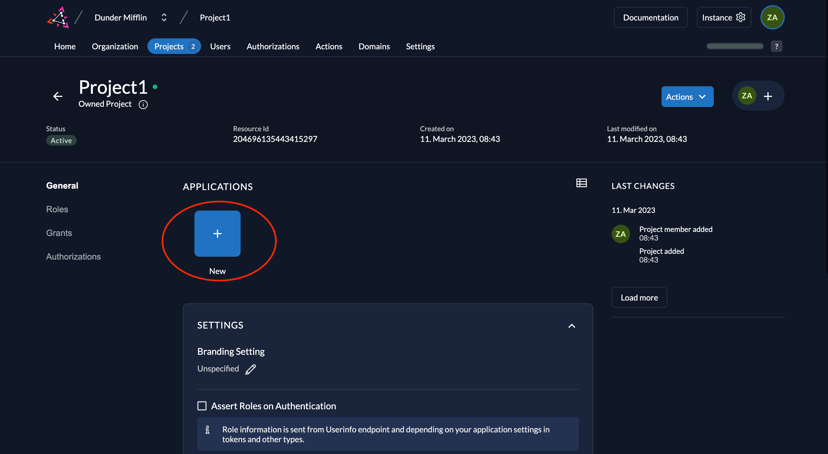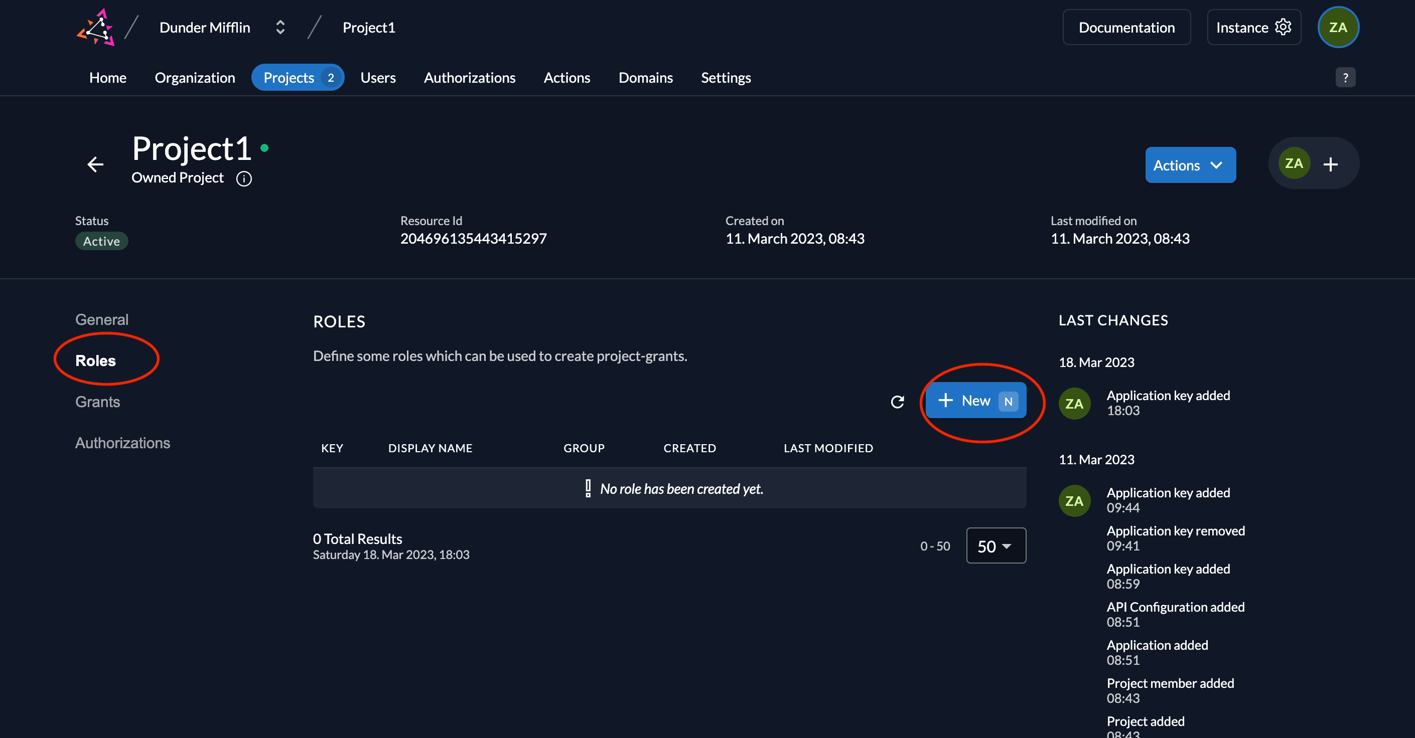 - Go to your project and select Roles. Click New.