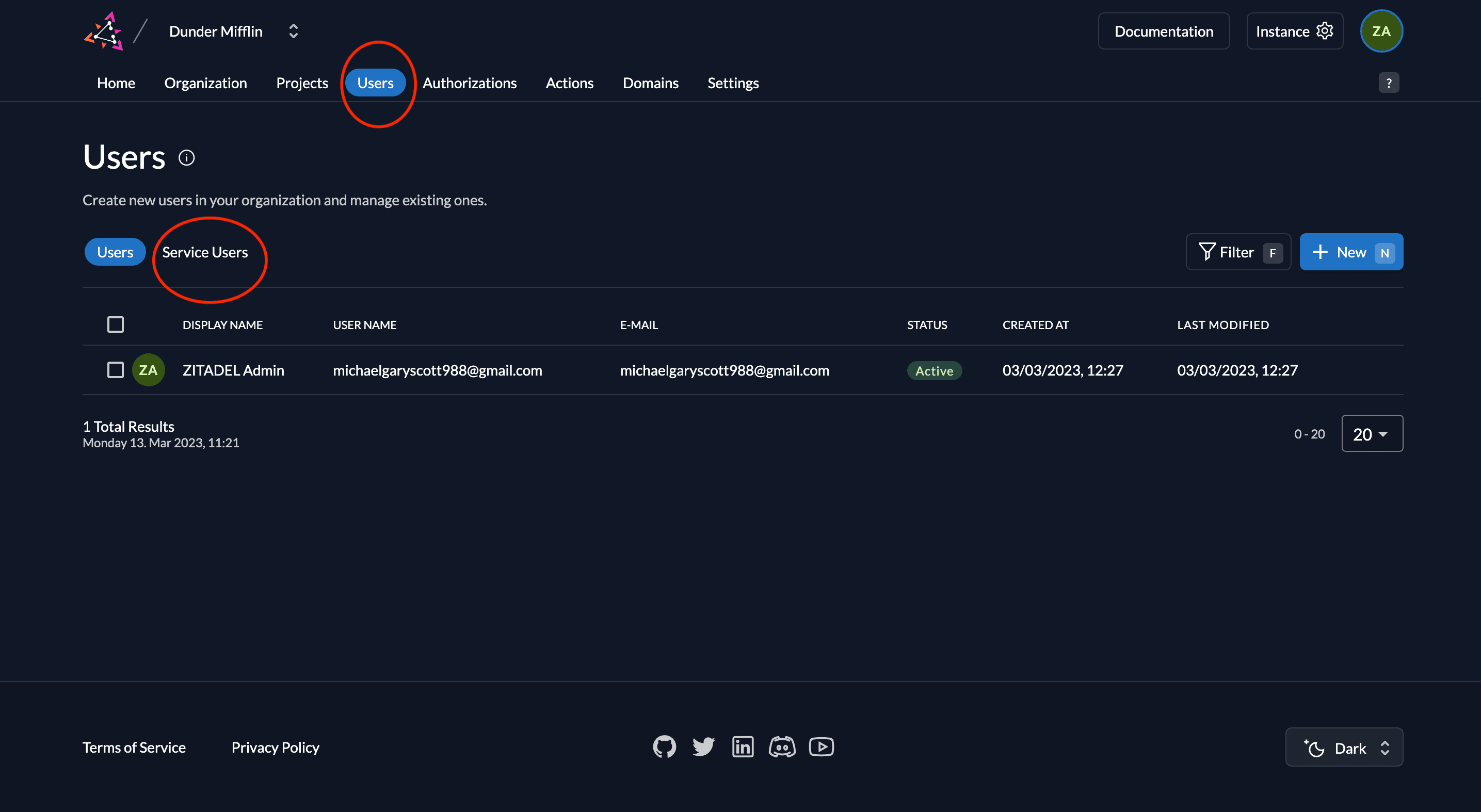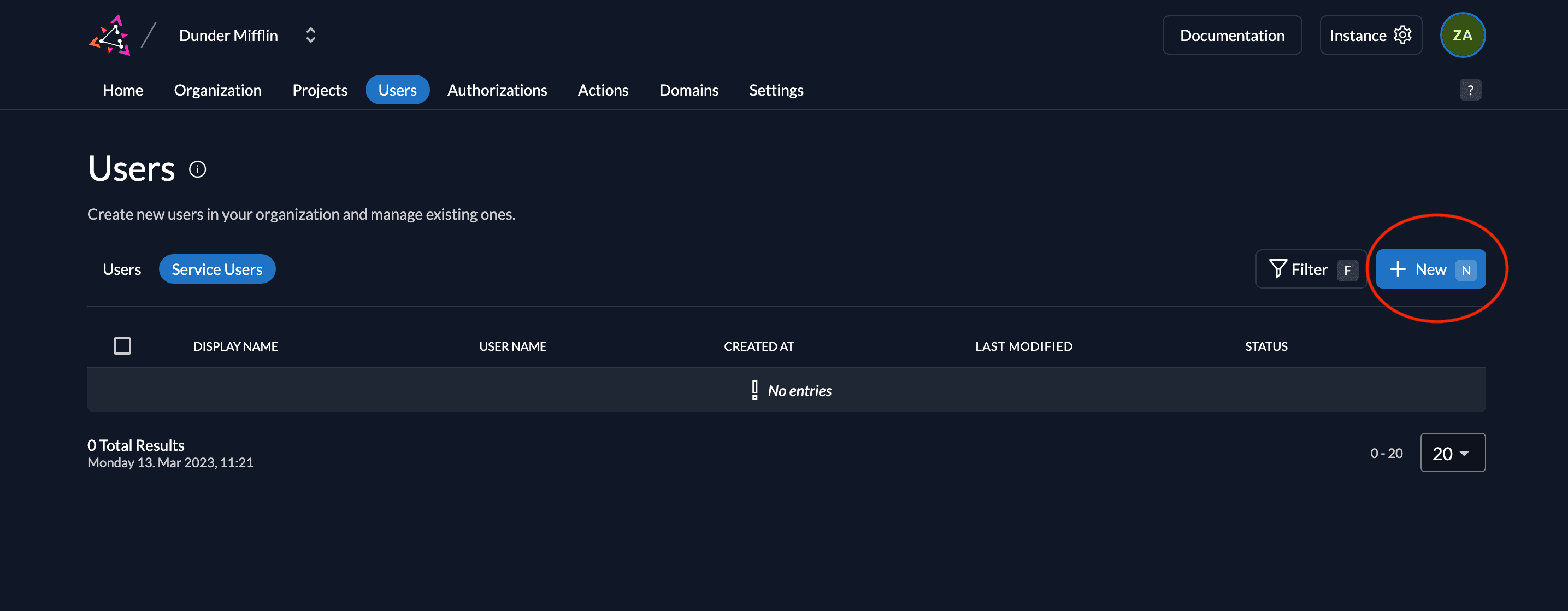 - Go to the Users tab in your organization as shown below and click on the Service Users tab.