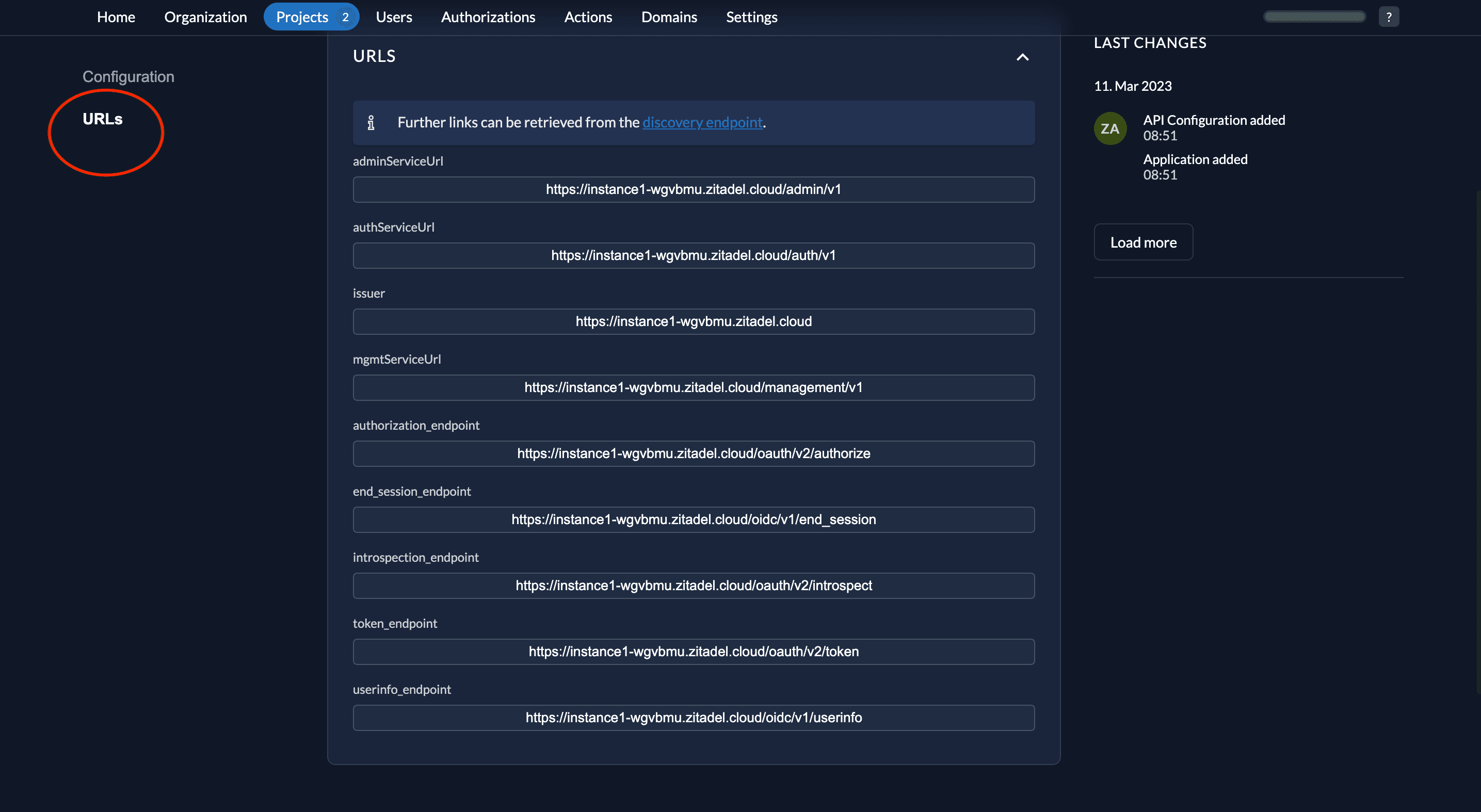 Add ZITADEL info to the service