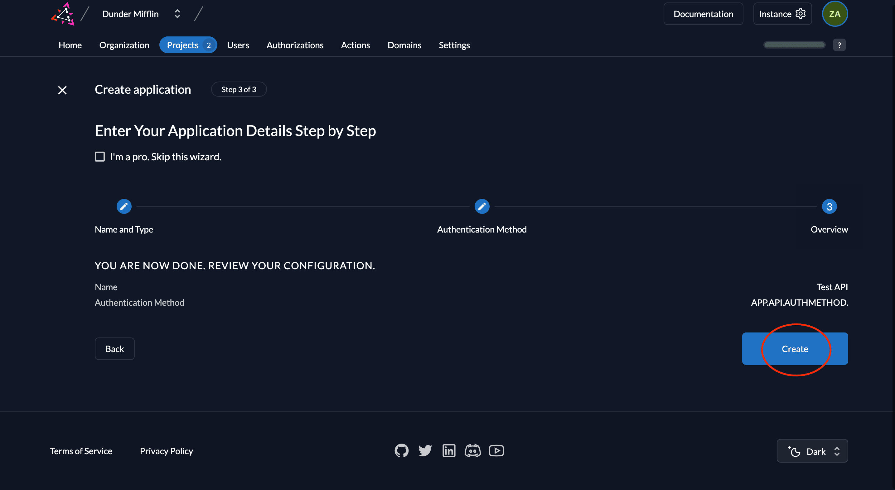 Create application