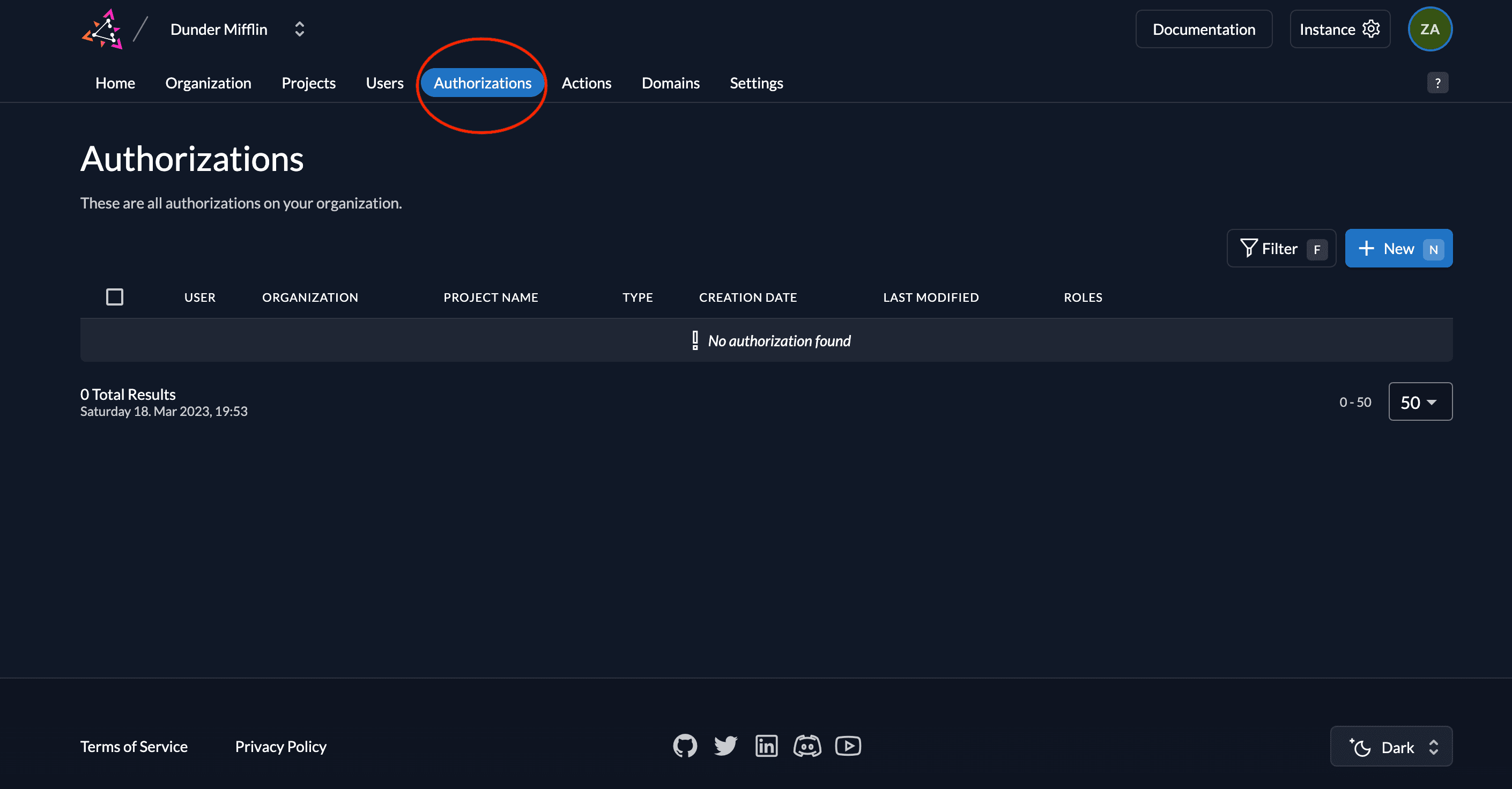 - To assign this role to a user, click on Authorizations.