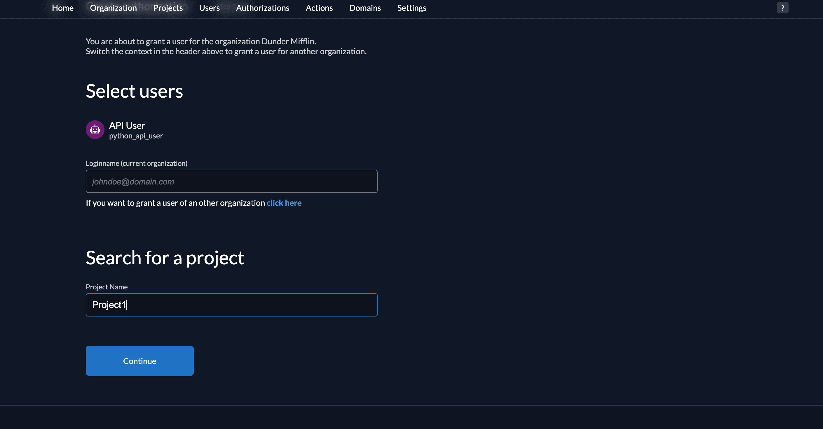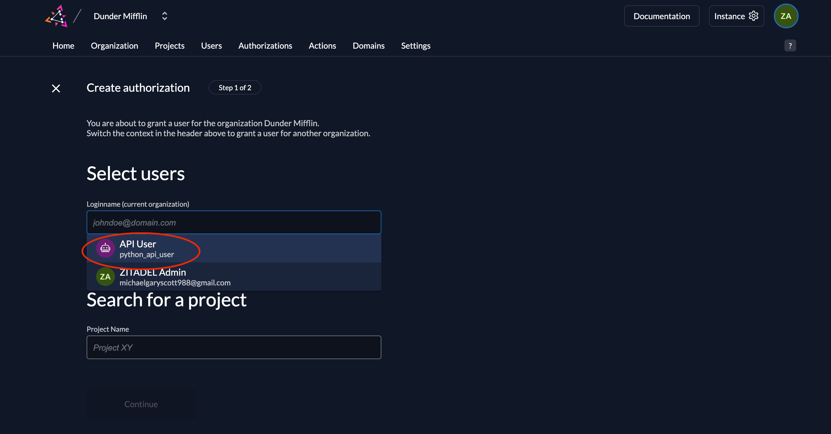 - Select the project where this authorization is applicable.