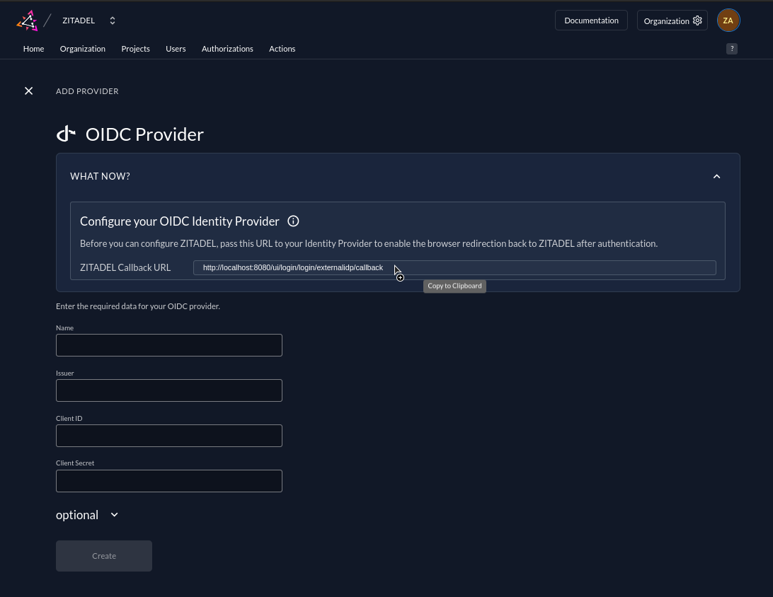 - Go back to the Generic OIDC Provider template you opened before in ZITADEL.
