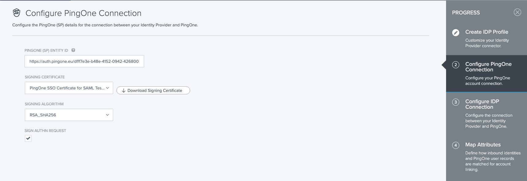 - create and configure the connection in your Ping Identity tenant