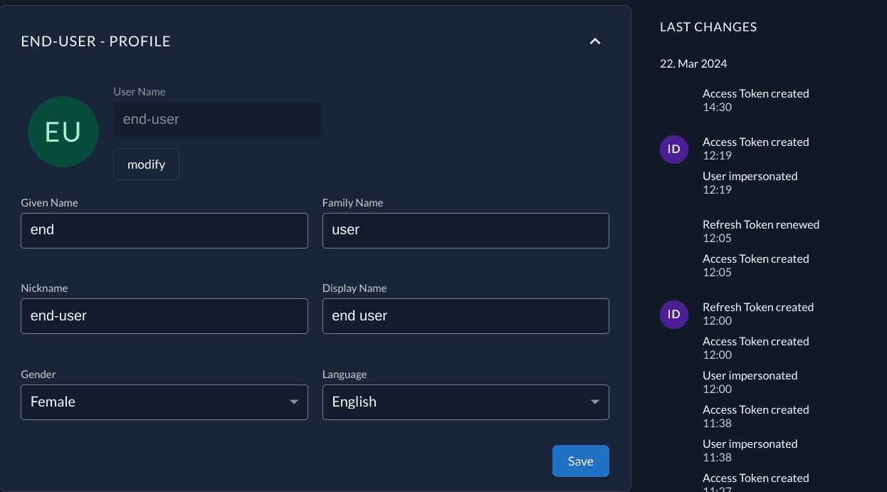 In the user view of the management console we can see whenever a new access token is created for a user.